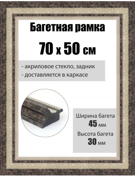 Рамка багетная для картин со стеклом 70 x 50 см, РБ-261