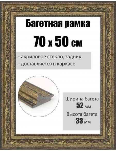 Рамка багетная для картин со стеклом 70 x 50 см, РБ-272
