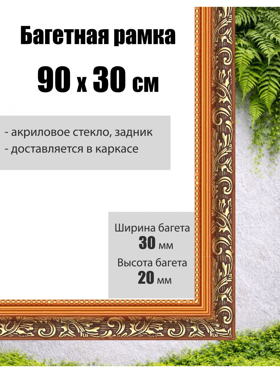 Рамка багетная для картин со стеклом 90 x 30 см, РБ-001 1 607 руб.