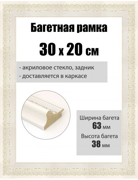 Рамка багетная для картин со стеклом 30 x 20 см, РБ-104