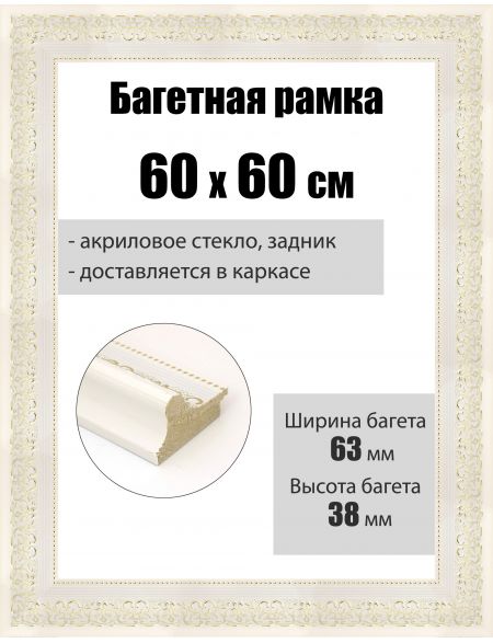 Рамка багетная для картин со стеклом 60 x 60 см, РБ-104