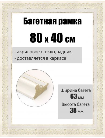 Рамка багетная для картин со стеклом 80 x 40 см, РБ-104