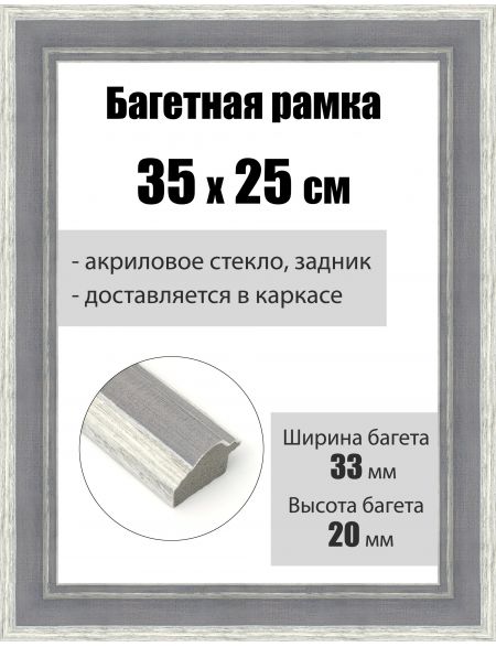 Рамка багетная для картин со стеклом 35 x 25 см, РБ-195