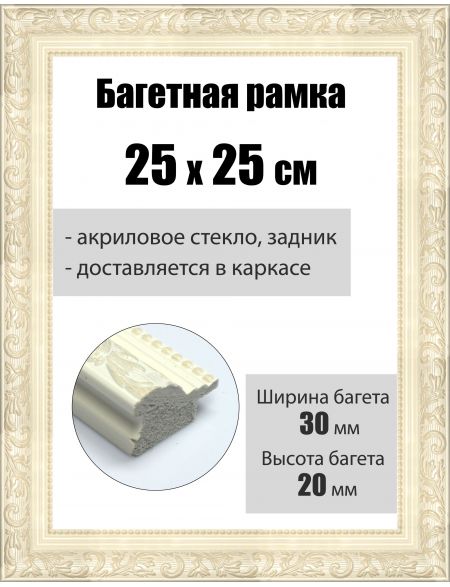 Рамка багетная для картин со стеклом 25 x 25 см, РБ-054