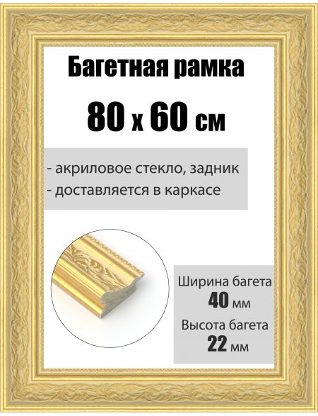Рамка багетная для картин со стеклом 80 x 60 см, РБ-192