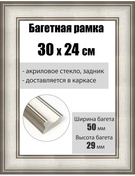 Рамка багетная для картин со стеклом 30 x 24 см, РБ-193