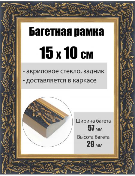 Рамка багетная для картин со стеклом 15 x 10 см, РБ-237