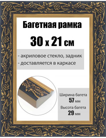 Рамка багетная для картин со стеклом 30 x 21 см, РБ-237