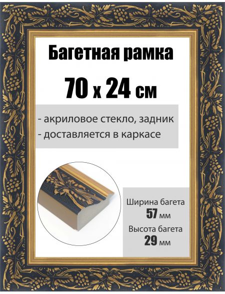 Рамка багетная для картин со стеклом 70 x 24 см, РБ-237