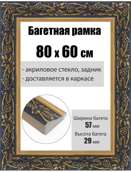 Рамка багетная для картин со стеклом 80 x 60 см, РБ-237