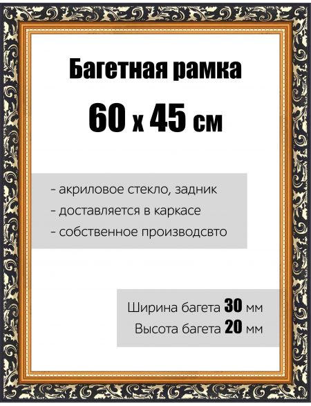 Рамка багетная для картин со стеклом 60 x 45 см, РБ-057