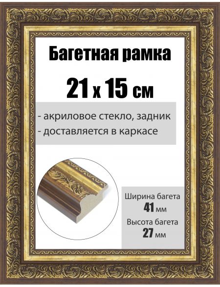 Рамка багетная для картин со стеклом 21 x 15 см, РБ-239