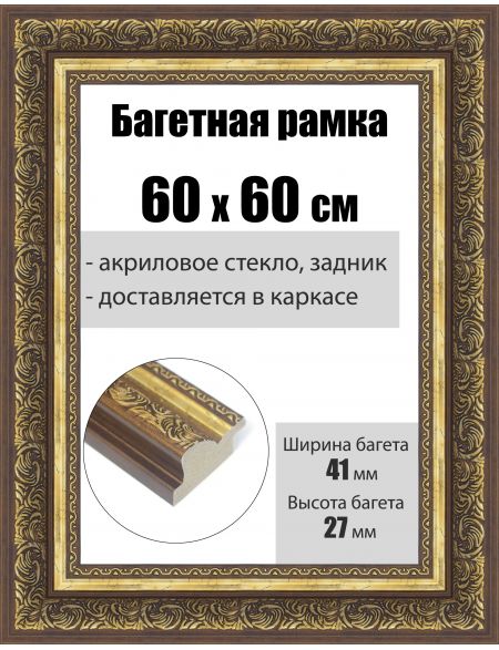 Рамка багетная для картин со стеклом 60 x 60 см, РБ-239