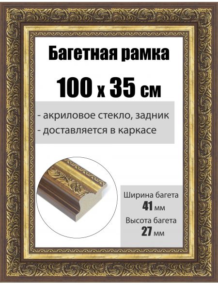 Рамка багетная для картин со стеклом 100 x 35 см, РБ-284