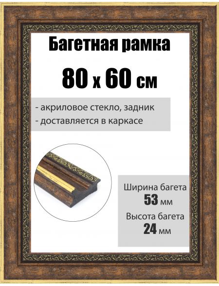 Рамка багетная для картин со стеклом 80 x 60 см, РБ-284