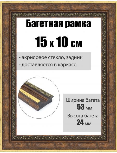 Рамка багетная для картин со стеклом 15 x 10 см, РБ-284