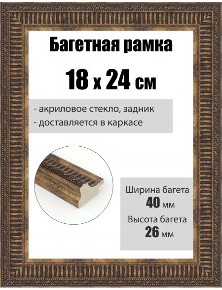 Рамка багетная для картин со стеклом 24 x 18 см, РБ-288