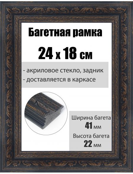 Рамка багетная для картин со стеклом 24 x 18 см, РБ-203