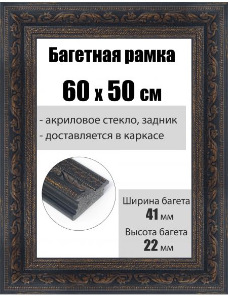 Рамка багетная для картин со стеклом 60 x 50 см, РБ-203
