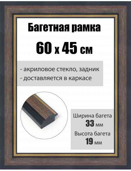 Рамка багетная для картин со стеклом 60 x 45 см, РБ-210