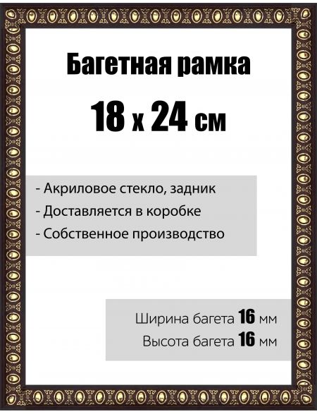 Рамка багетная для картин со стеклом 18 x 24 см, РБ-037