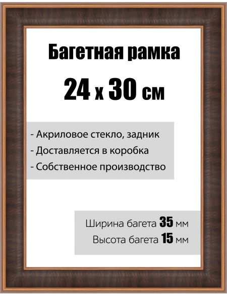 Рамка багетная для картин со стеклом 24 x 30 см, РБ-124