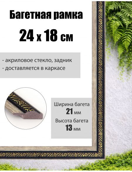 Рамка багетная для картин со стеклом 18 x 24 см, РБ-030