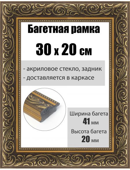 Рамка багетная для картин со стеклом 30 x 20 см, РБ-212
