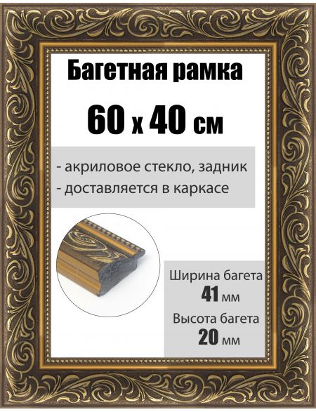 Рамка багетная для картин со стеклом 60 x 40 см, РБ-183