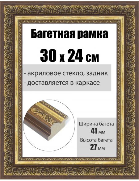 Рамка багетная для картин со стеклом 30 x 24 см, РБ-239
