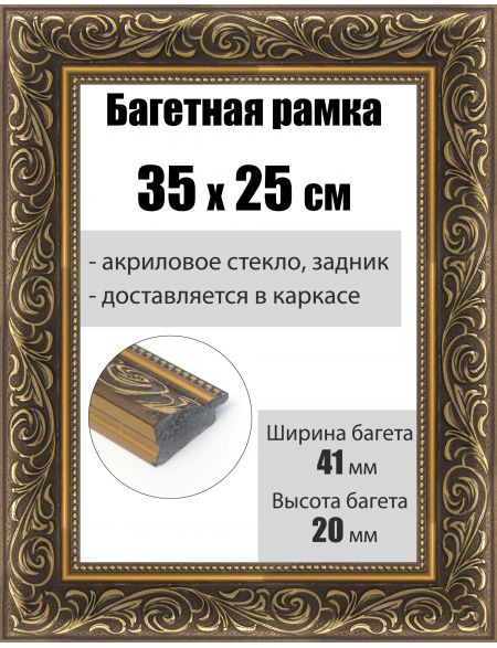 Рамка багетная для картин со стеклом 35 x 25 см, РБ-046