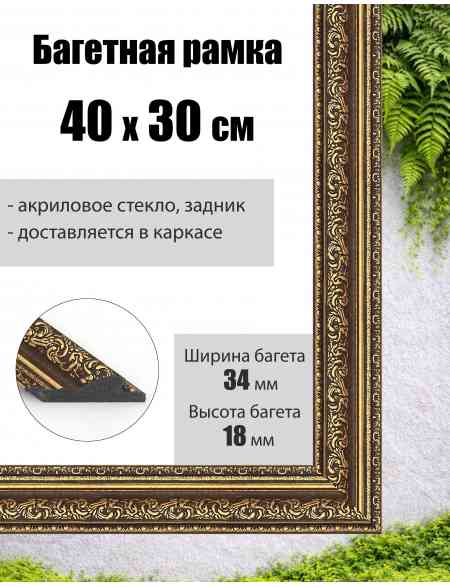 Рамка багетная для картин со стеклом 40 x 30 см, РБ-175