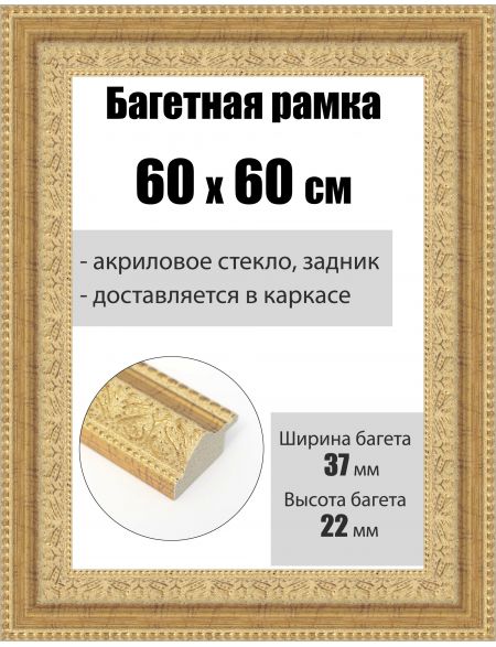 Рамка багетная для картин со стеклом 60 x 60 см, РБ-236
