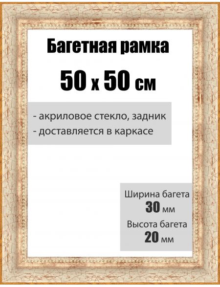 Рамка багетная для картин со стеклом 50 x 50 см, РБ-059
