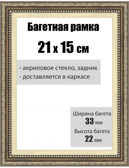 Рамка багетная для картин со стеклом 21 x 15 см, РБ-036