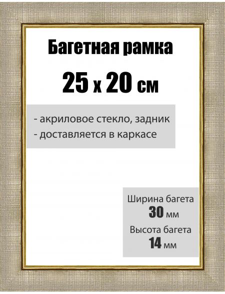 Рамка багетная для картин со стеклом 25 x 20 см, РБ-004