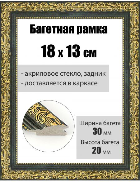 Рамка багетная для картин со стеклом 18 x 13 см, РБ-033