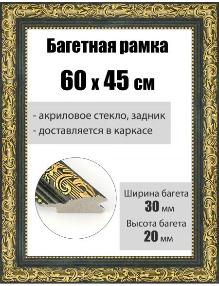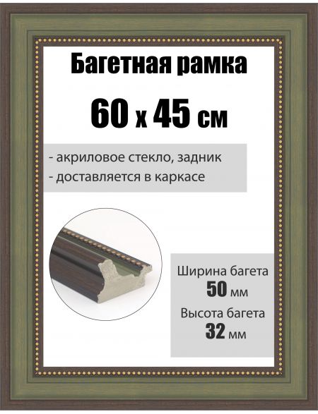 Рамка багетная для картин со стеклом 60 x 45 см, РБ-033