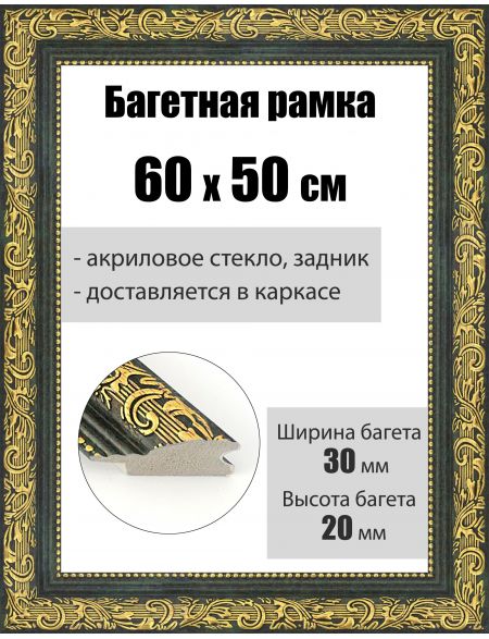 Рамка багетная для картин со стеклом 60 x 50 см, РБ-033