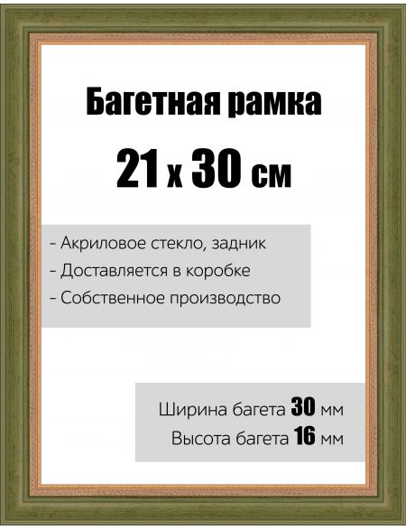 Рамка багетная для картин со стеклом 21 x 30 см, РБ-021
