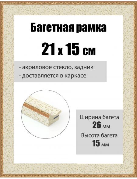 Рамка багетная для картин со стеклом 21 x 15 см, РБ-261