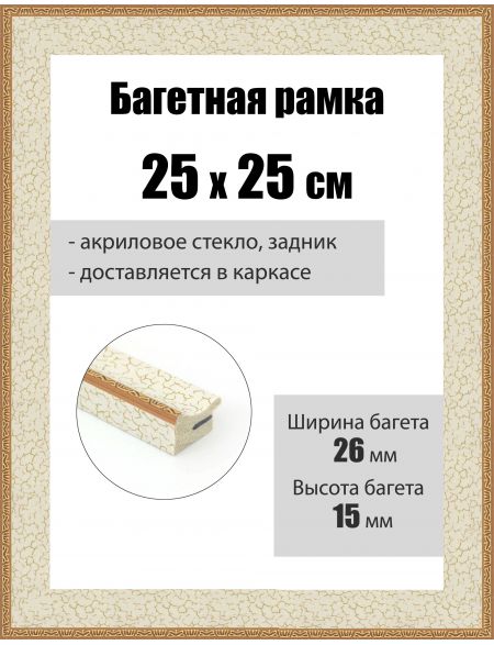 Рамка багетная для картин со стеклом 25 x 25 см, РБ-261