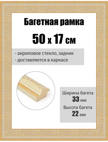 Рамка багетная для картин со стеклом 50 x 17 см, РБ-261
