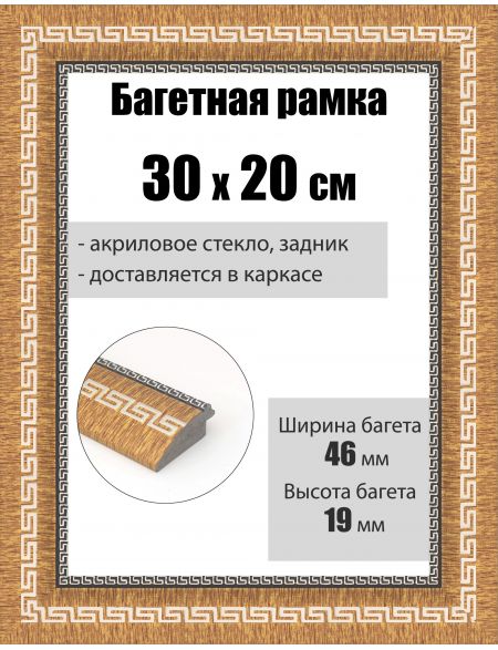 Рамка багетная для картин со стеклом 30 x 20 см, РБ-259