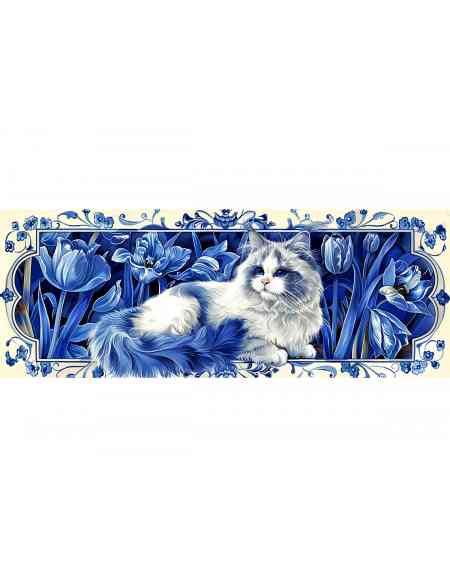 Алмазная мозаика на подрамнике «Кот гжель» 100x35 см
