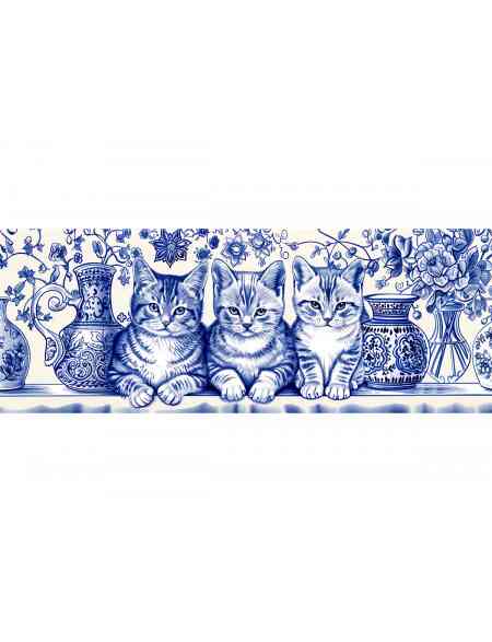 Алмазная мозаика на подрамнике «Кот гжель» 100x35 см