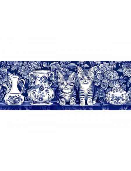 Алмазная мозаика на подрамнике «Кот гжель» 100x35 см