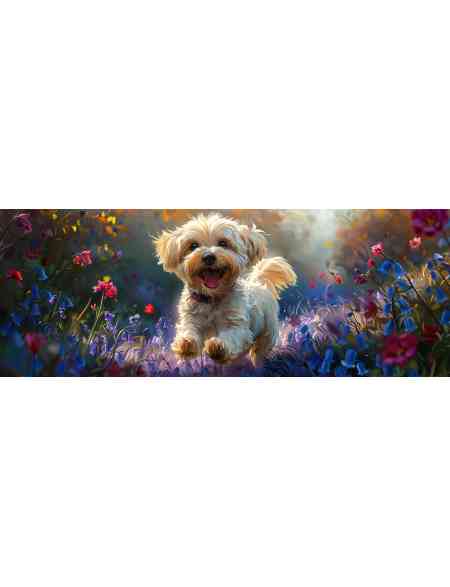 Алмазная мозаика на подрамнике «Мальтийская болонка» 100x35 см, 50 цветов