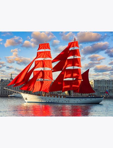 Алмазная мозаика без подрамника «Бриг с Алыми Парусами» 130x100 см, 50 цветов