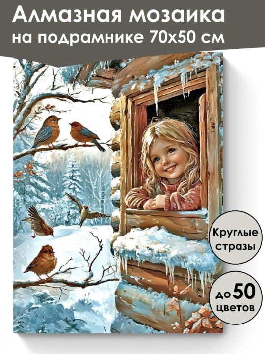 Алмазная мозаика 70×50 см собственного производства на подрамнике. В картине используется до 50 оттенков для глубины цвета и плавных переходов. Надёжный клеевой слой не сохнет месяцами, стразы (26 граней) яркие, высокого качества и не отлетают. В наборе присутствуют дополнительно ZIP пакеты, номера и инструменты, для удобства работы со стразами. Картина защищена прозрачной плёнкой. Схема напечатана водными пигментными чернилами (без свинца и запаха) в светлых пастельных тонах для комфортной работы. Плотный полухлопковый холст легко разглаживается и не мнётся. Доставляется в бурой коробке. После сборки мозаика выглядит яркой и эстетичной. Картину можно повесить на стену используя крепление которое идёт в комплекте.